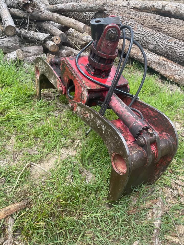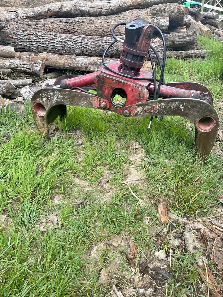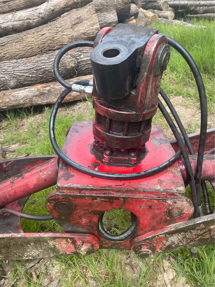 Just taken off the log truck. It is not a thru grapple. Everything about it is heavy duty. Cylinders are good. 360 continuous rotation. The knuckle width is 4.5”. Takes a 1 3/4” diameter bolt for the knuckle